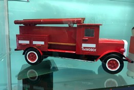 Работник пожарно-спасательной части № 41 пгт. Тымовское, Анатолий Николаевич Варнавский, своими руками изготовил модель старинного пожарного автомобиля из дерева.