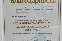 Агентство по труду и занятости населения отметило благодарностью Пожарно-спасательную службу Сахалинской области