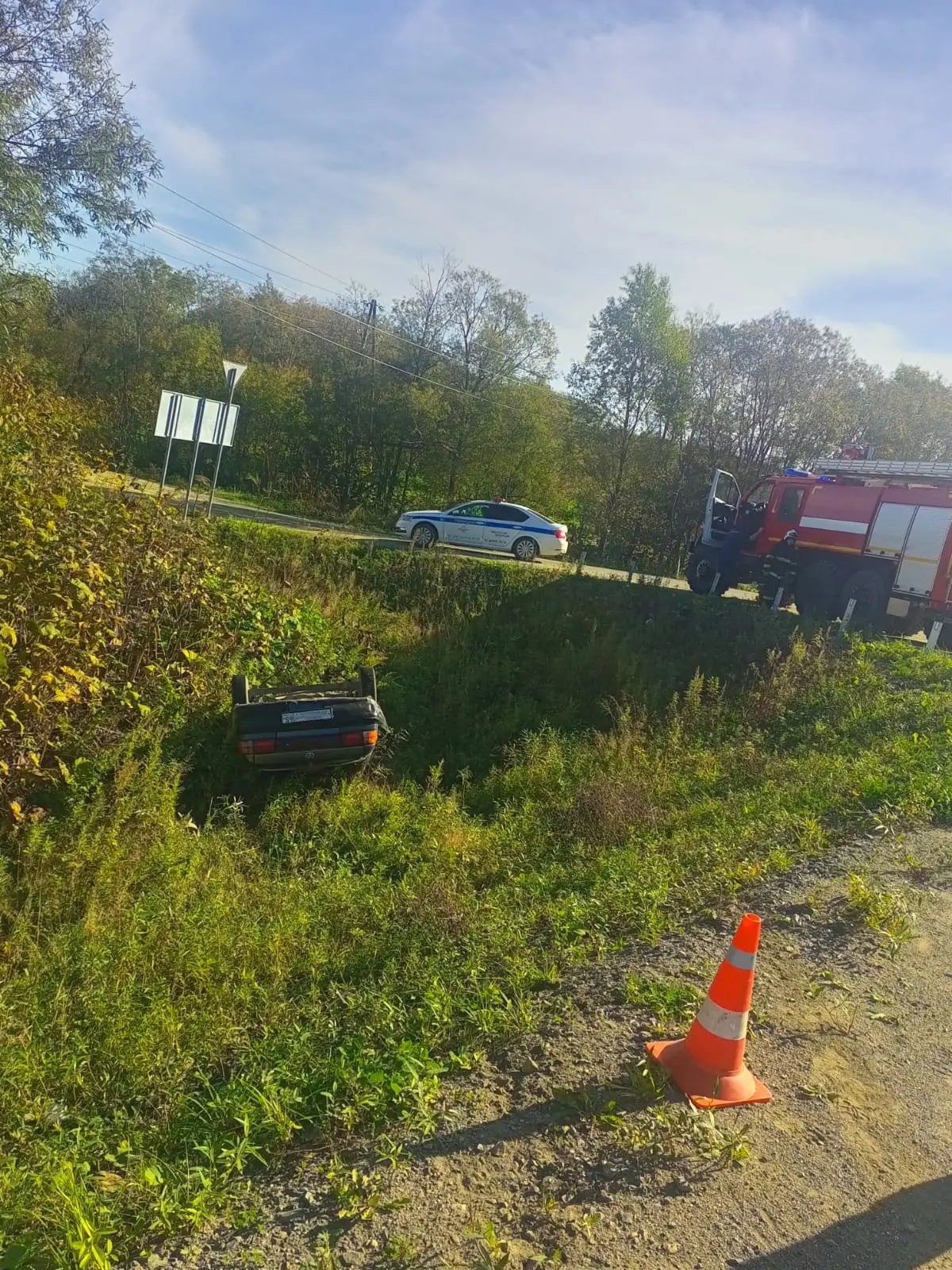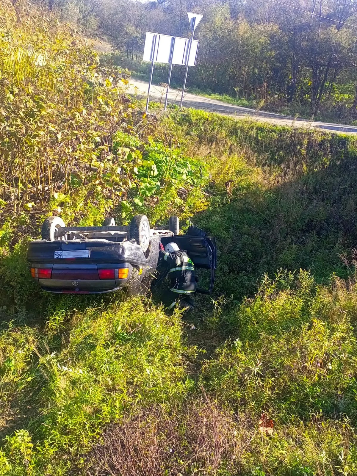 1 октября на 9 км. автодороги Долинск-Быков, произошло ДТП с участием автомобиля Toyota Tercel. По неустановленной причине машина съехала с дороги и перевернувшись, оказалась в кювете.. В момент ДТП в автомобиле находился 1 человек, он не пострадал.