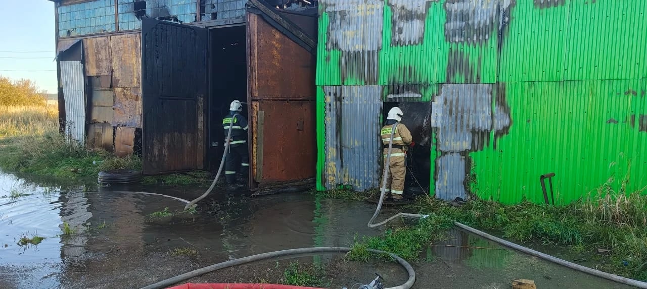 Сообщение о пожаре поступило в диспетчерскую службу Томаринского пожарно-спасательного отряда 3 октября в 16:16. Через 13 минут работники пожарно-спасательной службы прибыли на место происшествия и приступили к тушению. К этому моменту в Томаринском городском округе на территории совхоза «Заречное», горело строение гаражного типа.