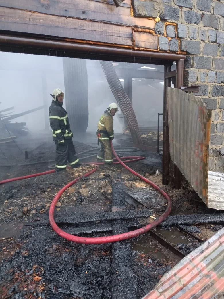 157 тонн воды потратили областные пожарные при ликвидации возгорания цеха лесопиления в селе Молодёжное