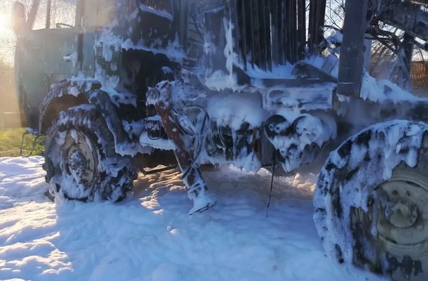 В городе Долинск потушили загоревшийся автокран