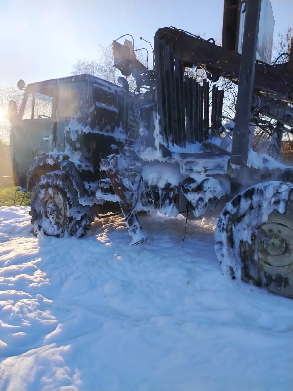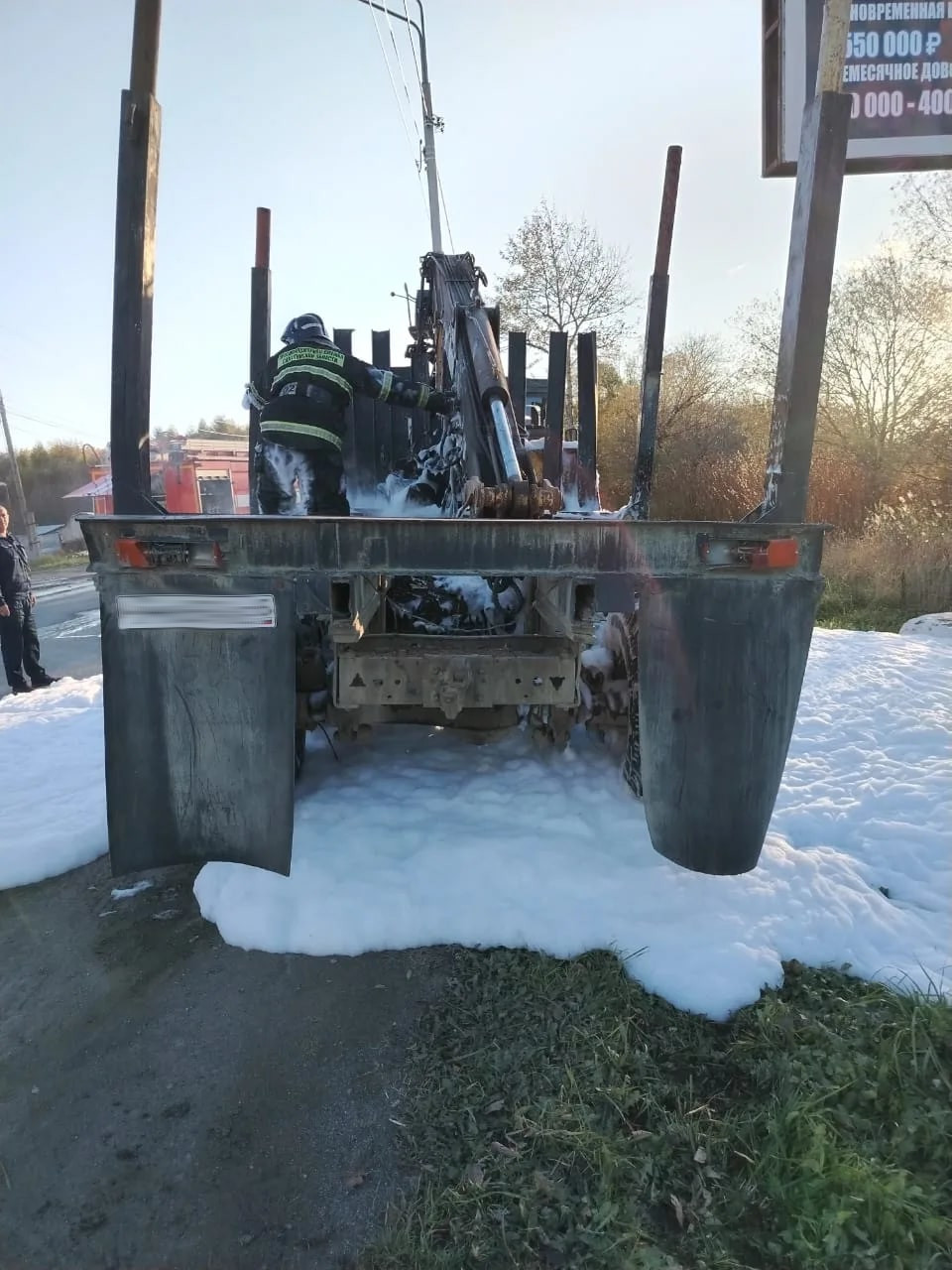 В городе Долинск потушили загоревшийся автокран