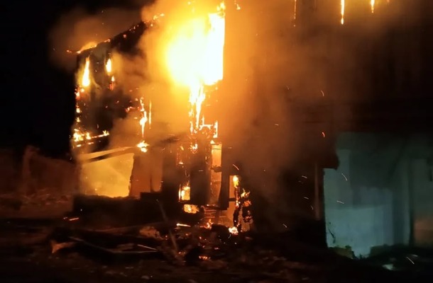 Пожар площадью 450 «квадратов» охватил заброшенный двухэтажный дом в селе Костромское