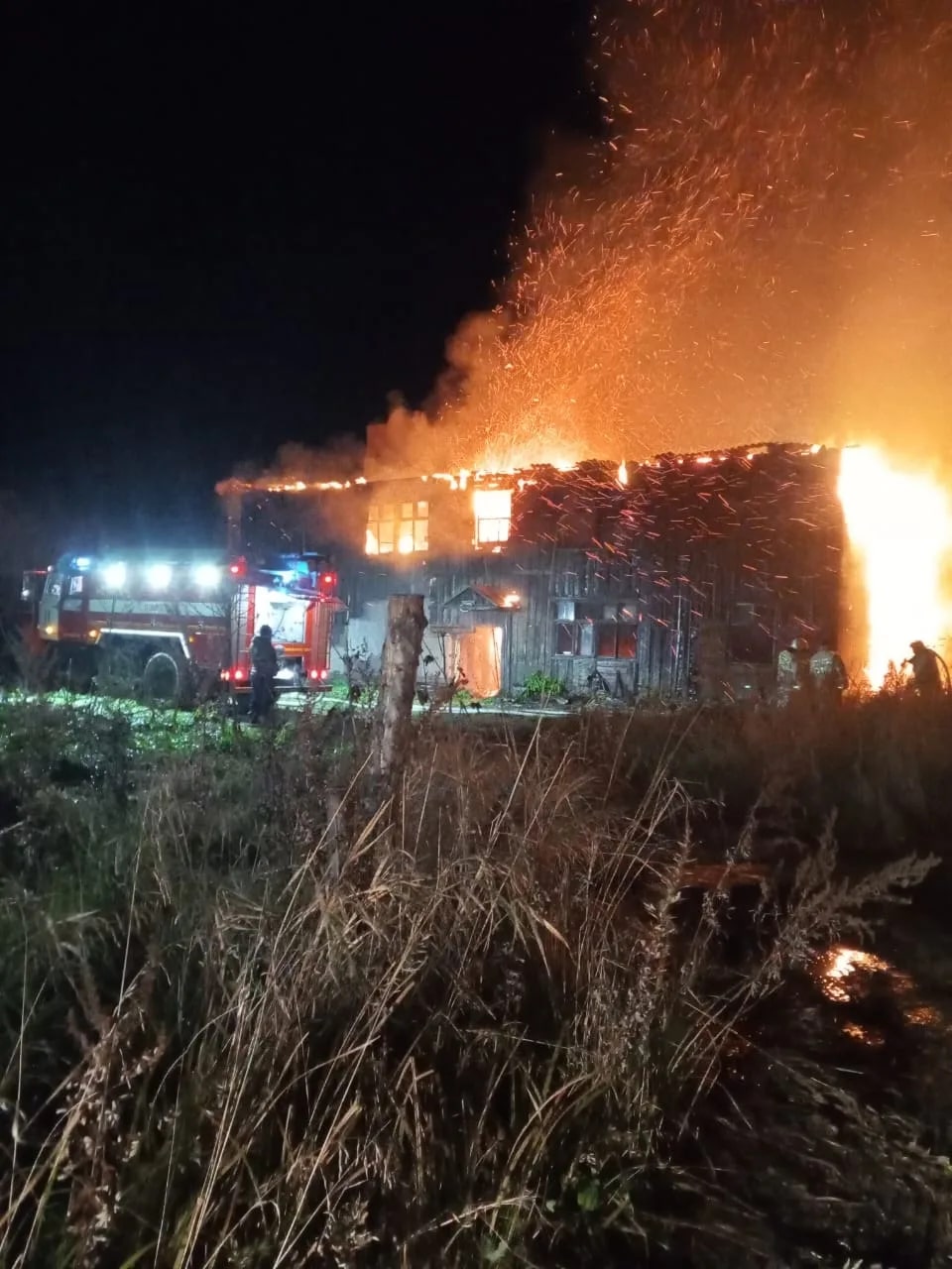Пожар площадью 450 «квадратов» охватил заброшенный двухэтажный дом в селе Костромское