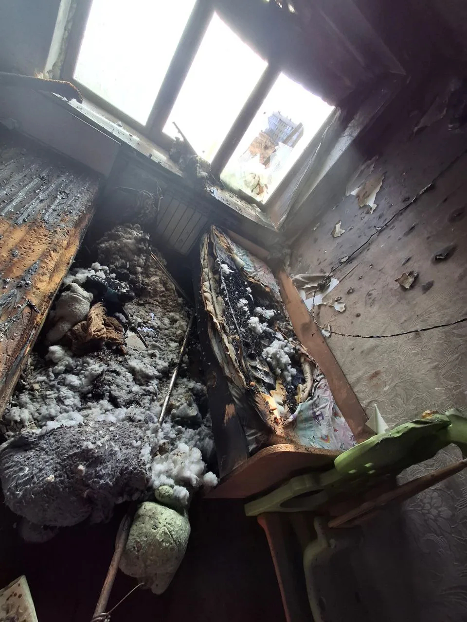 В одной из квартир многоэтажного дома в городе Поронайск загорелась кровать