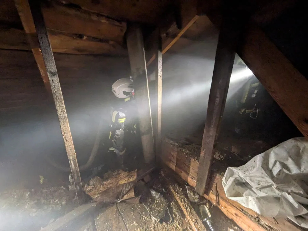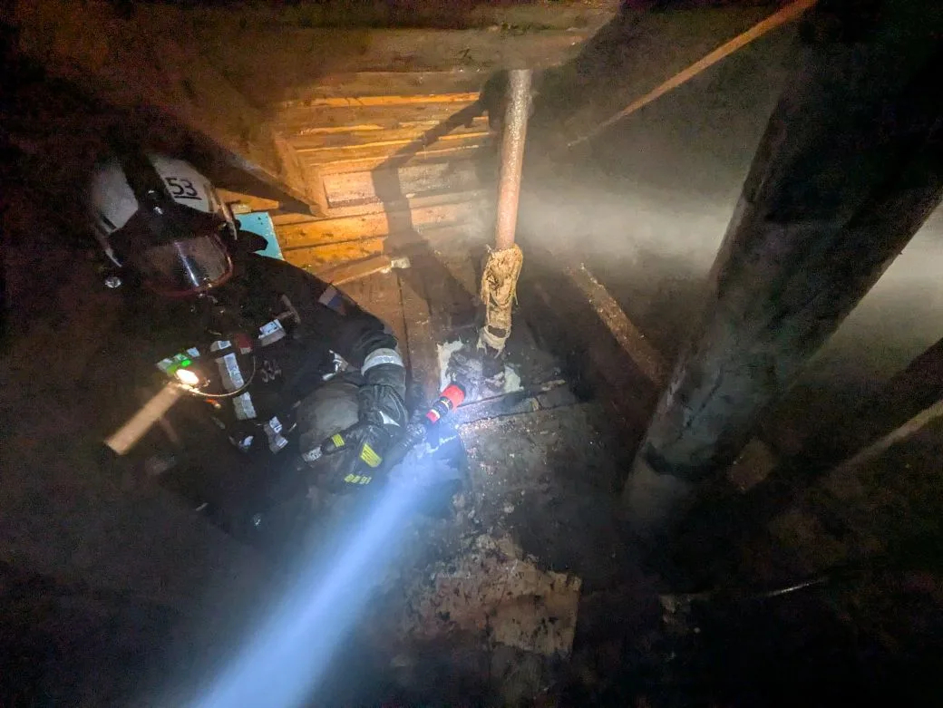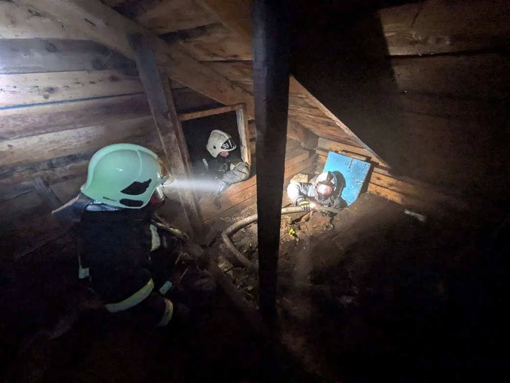 Сообщение о пожаре в по адресу г. Северо-Курильск, улица Освобождения, поступило в диспетчерскую службу Северо-Курильской пожарно-спасательной части 28 октября в 22:54. Через 3 минуты работники пожарно-спасательной службы прибыли на место происшествия. К этому времени с чердака жилого частного дома шёл густой дым, горело перекрытие над ванной комнатой. Площадь возгорания составила 4 кв. м.