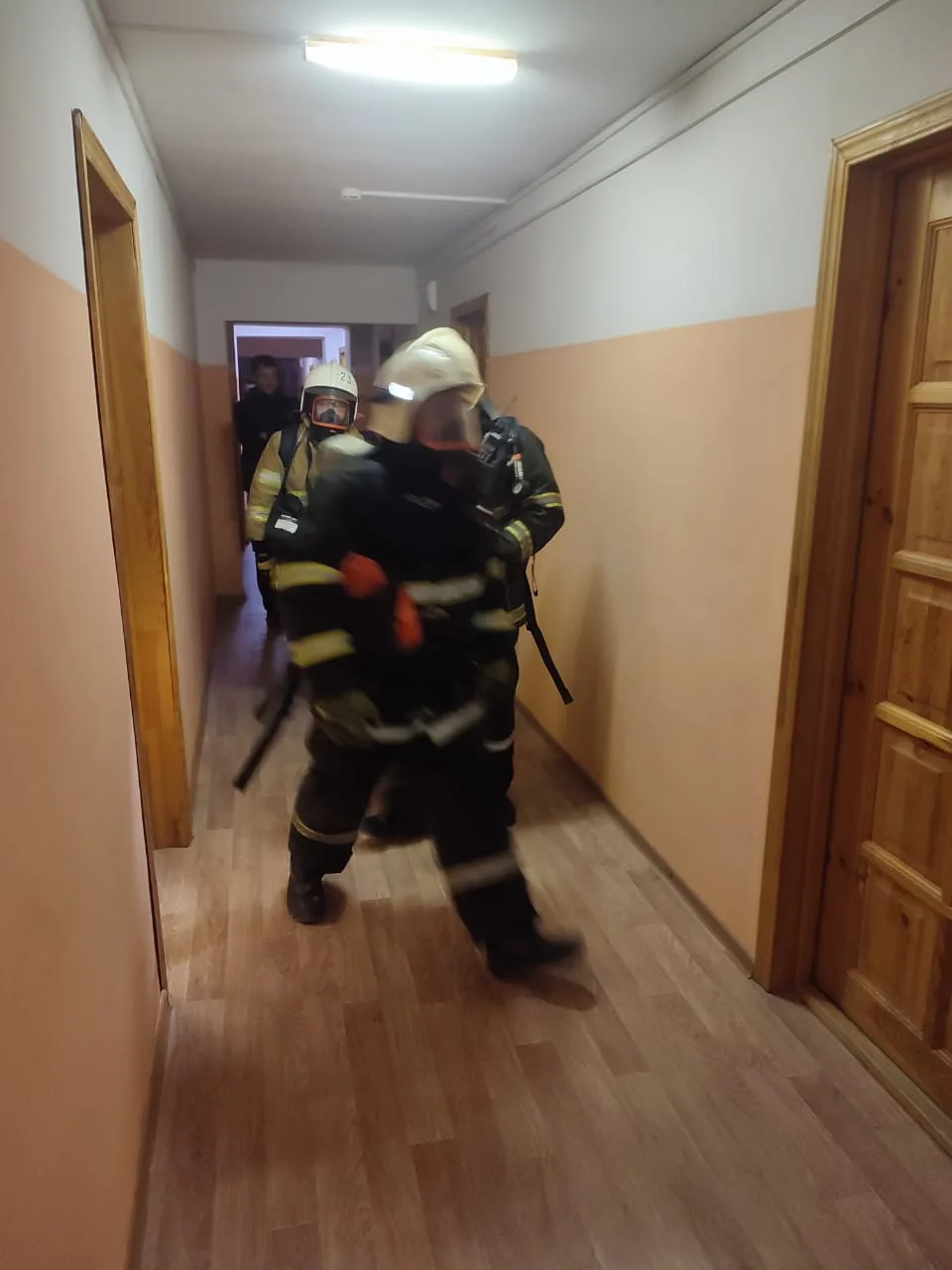 Сотрудник охранного предприятия был обнаружен в одном из кабинетов второго этажа здания и, используя спасательное устройство, был выведен на свежий воздух, а затем передан работникам медицинской службы.