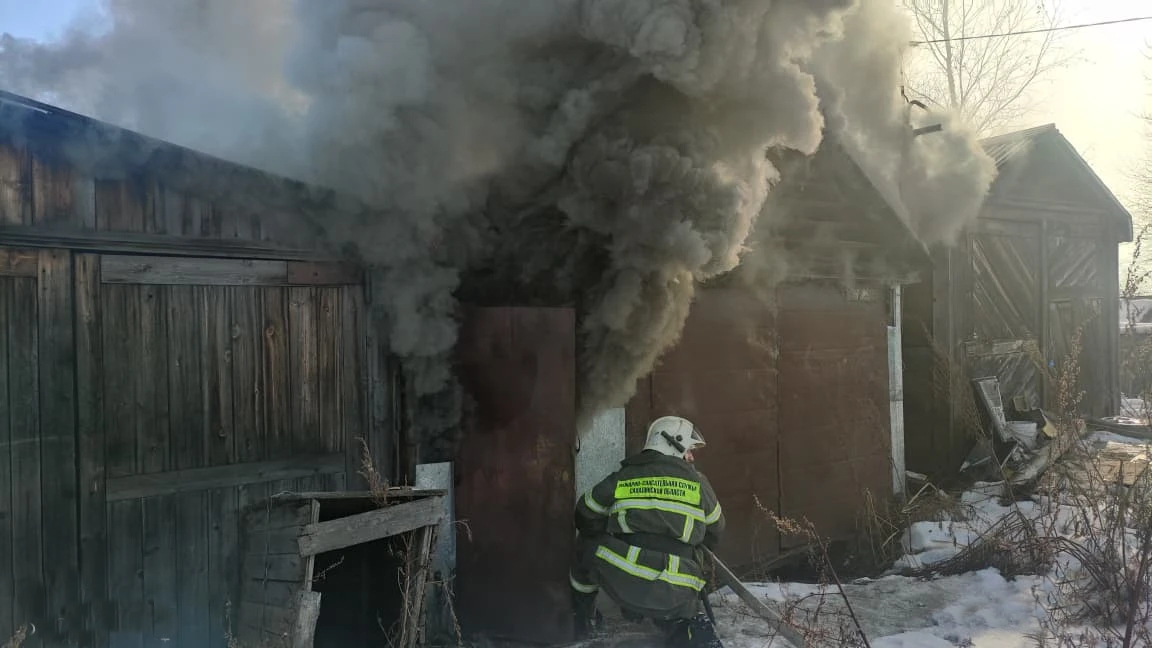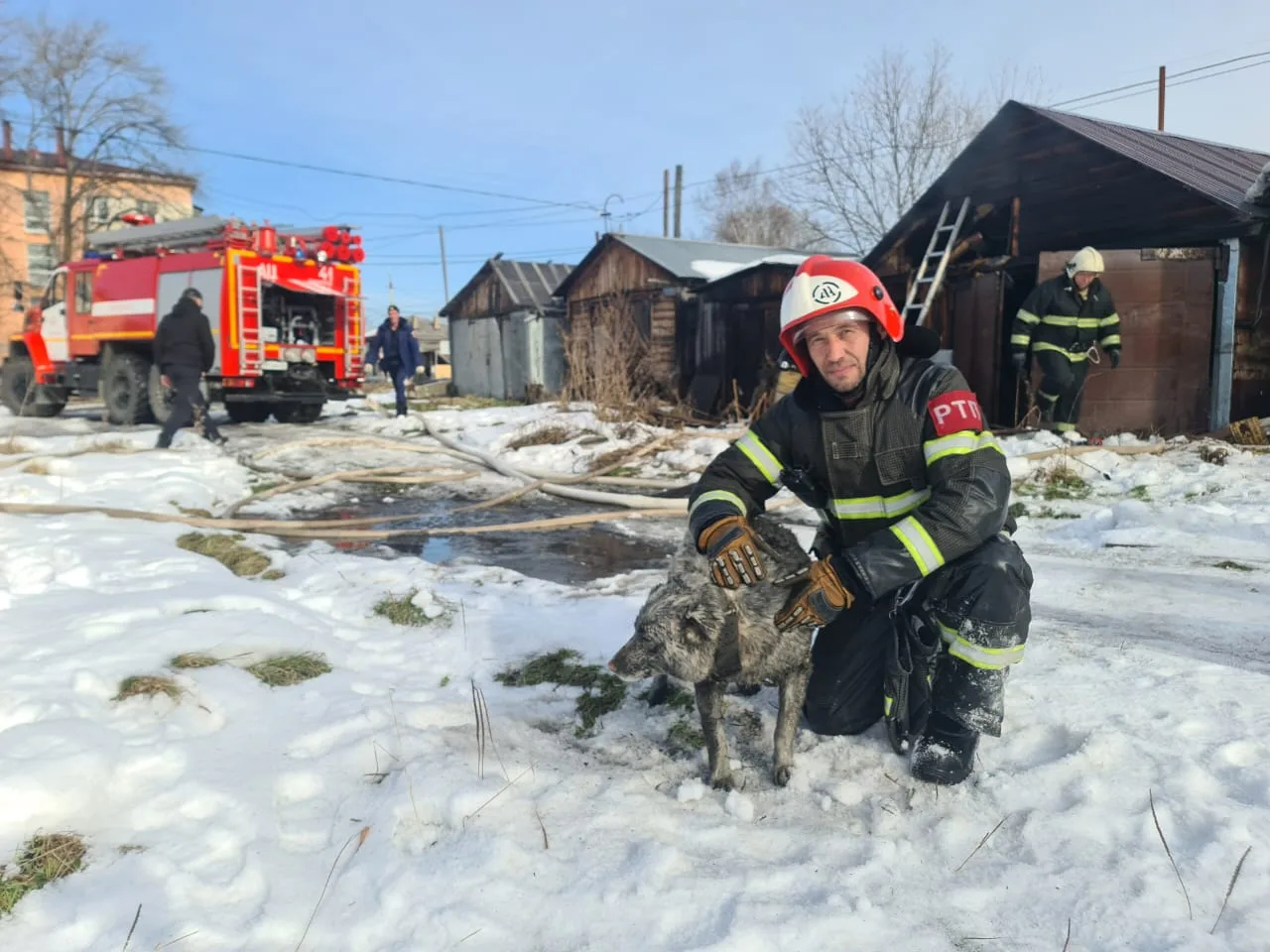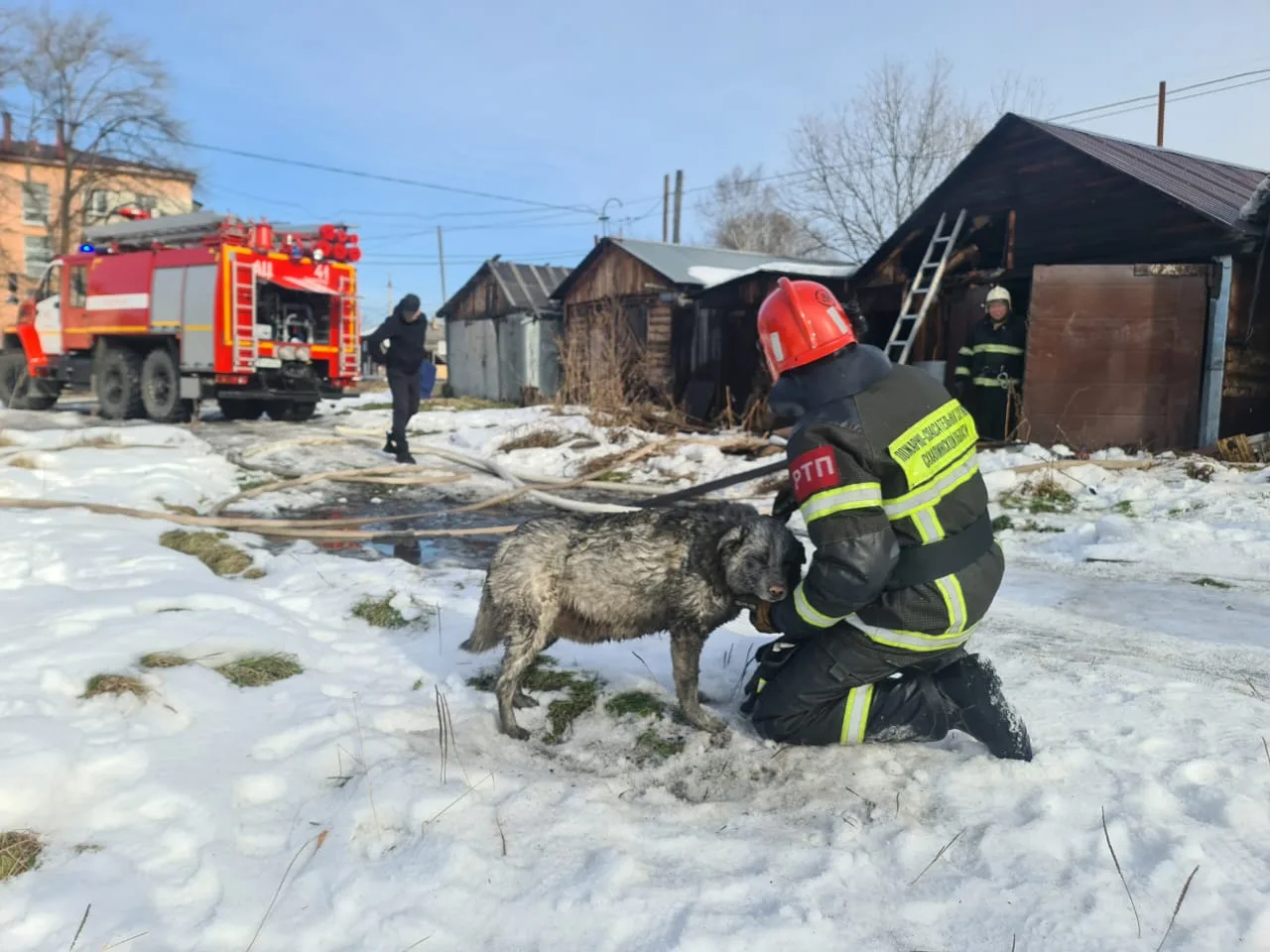 В Тымовском во время ликвидации возгорания гаража пожарные спасли собаку