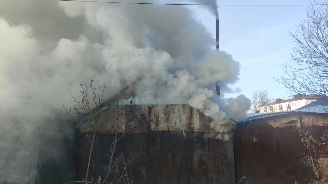 Сообщение о пожаре по адресу: пгт. Тымовское, улица Криворучко, 36, поступило в диспетчерскую службу Тымовского пожарно-спасательного отряда 1 ноября в 12:03. Через 4 минуты работники пожарно-спасательной службы прибыли на место происшествия. К этому времени на площади 24 кв. метра изнутри горел гараж, внутри находилась собака. К счастью, её огнеборцы смогли спасти.