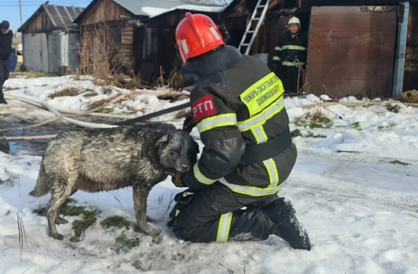 В Тымовском во время ликвидации возгорания гаража пожарные спасли собаку