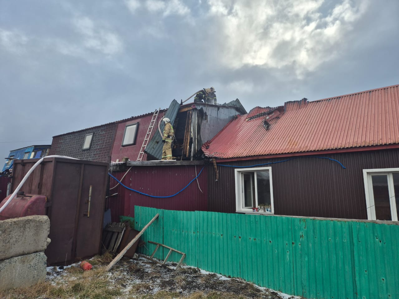 Сообщение о пожаре по адресу: г. Курильск, ул. Ленинского Комсомола, поступило в диспетчерскую службу Курильского пожарно-спасательного отряда 18 ноября в 13:05. Через 3 минуты пожарные прибыли на место происшествия, где наблюдалось задымление чердачного помещения на крыше одноэтажного многоквартирного дома. Площадь возгорания составила 70 кв. метров.