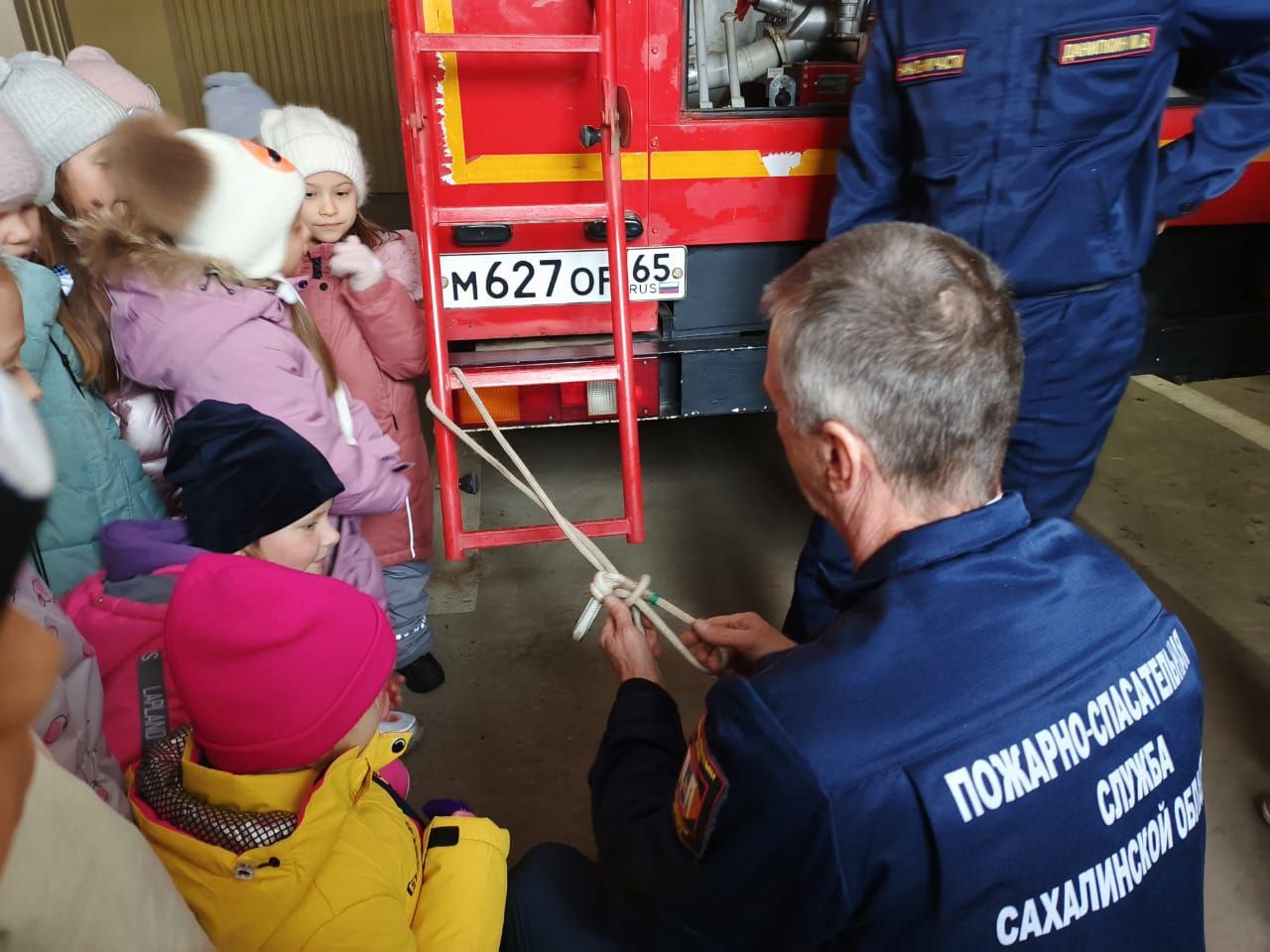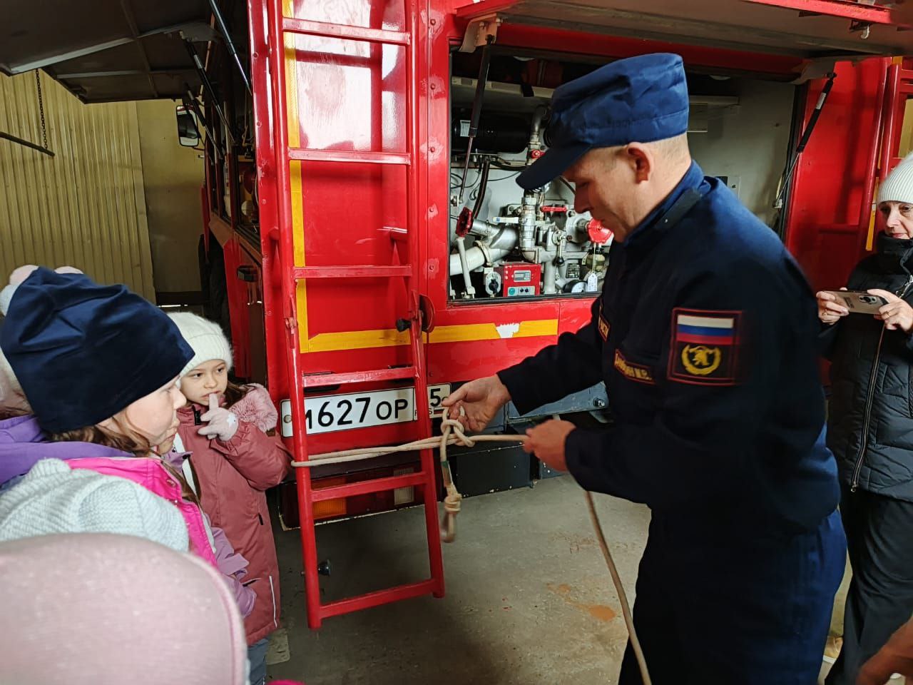 Ребята буквально увидели, насколько непростой и важной бывает работа пожарных. Школьникам показали технику, дали примерить шлем, рассказали, как устроена пожарная служба, и даже научили вязать спасательные узлы — те самые, от которых в реальности зависит чья-то жизнь.