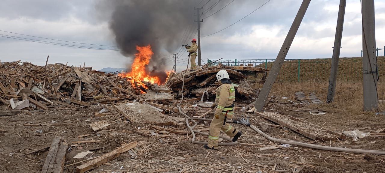 Сообщение о пожаре по адресу: пгт. Южно-Курильск, Садовый проезд, 3А, поступило в диспетчерскую службу Южно-Курильского пожарно-спасательного отряда 27 ноября в 15:40. Через 3 минуты пожарные прибыли на место происшествия, где на территории снесённого дома горел строительный мусор. Площадь возгорания составила 15 кв. метров. Угроза распространения пламени отсутствовала.