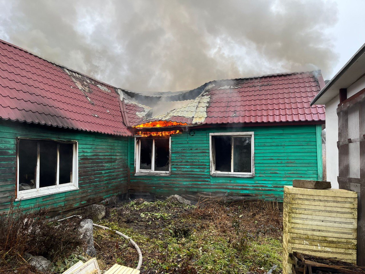 Сообщение о пожаре по адресу: с. Огоньки, ул. Советская 1А, поступило в диспетчерскую службу Анивского пожарно-спасательного отряда 28 ноября в 14:56. Через 4 минуты пожарные прибыли на место происшествия, где открытым пламенем горел частный дом. Площадь возгорания составила 130 кв. метров. Присутствовала угроза взрыва трёх баллонов с пропаном, находящихся внутри дома , кроме этого сохранялась возможность обрушения потолочного перекрытия.