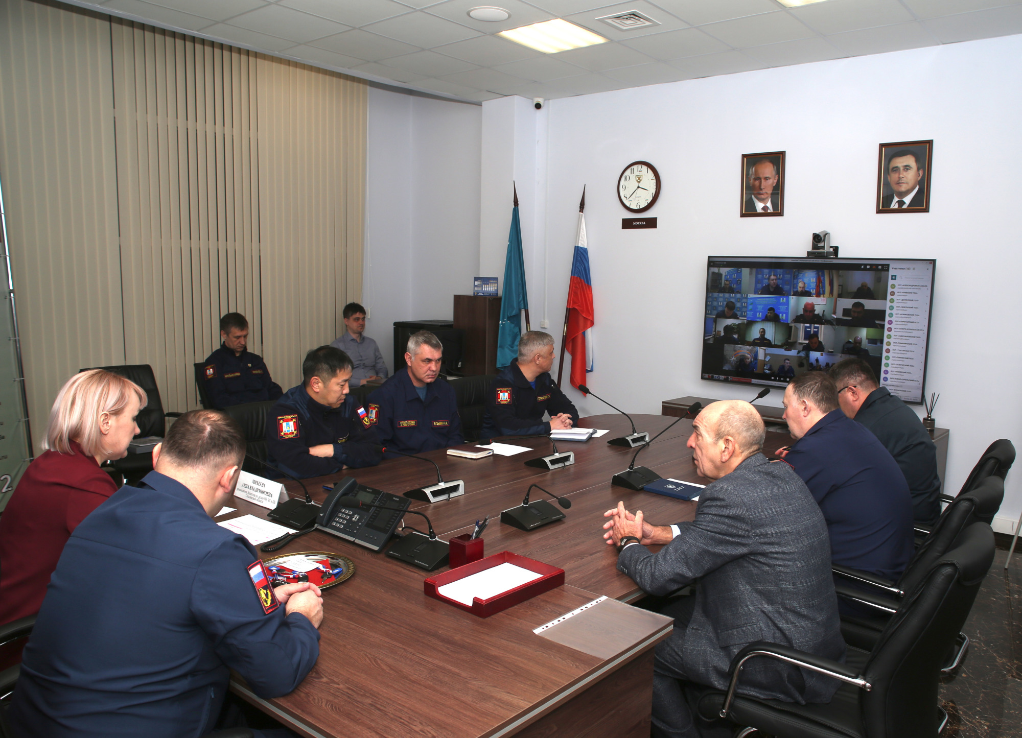 После приветственной части и награждения отличившихся подразделений мероприятие продолжилось докладами начальников пожарно-спасательных отрядов со всей Сахалинской области в режиме видеоконференцсвязи.