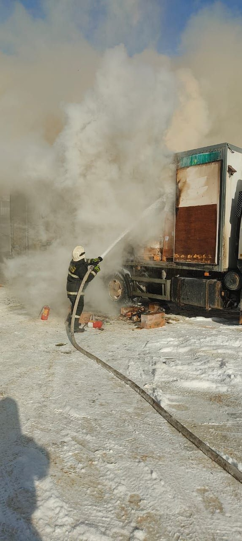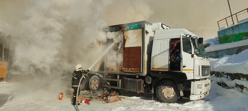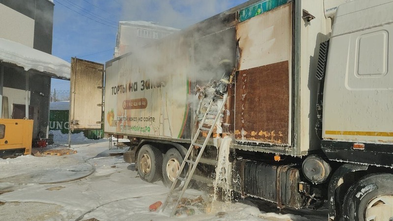 Сообщение о пожаре по адресу: город Долинск, улица Комсомольская, 35, поступило в диспетчерскую службу Долинского пожарно-спасательного отряда 29 января в 12:27. Через четыре минуты пожарные прибыли на место происшествия, где на площади 16 квадратных метров горел кузов торговой фуры. Грузовой отсек транспортного средства был заполнен товарами.