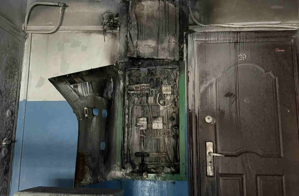 Сообщение о пожаре по адресу: город Долинск, улица Сахалинская, 6А, поступило в диспетчерскую службу Долинского пожарно-спасательного отряда 30 января в 09:26. Через пять минут пожарные прибыли на место происшествия, где в одном из подъездов жилой пятиэтажки горел электрощит.