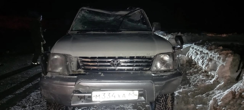 11 февраля на 115 километре автодороги Южно-Сахалинск - Оха произошло ДТП с участием автомобиля Toyota Prado. Водитель автомобиля не справился с управлением, вследствие чего произошло опрокидывание к кювет.