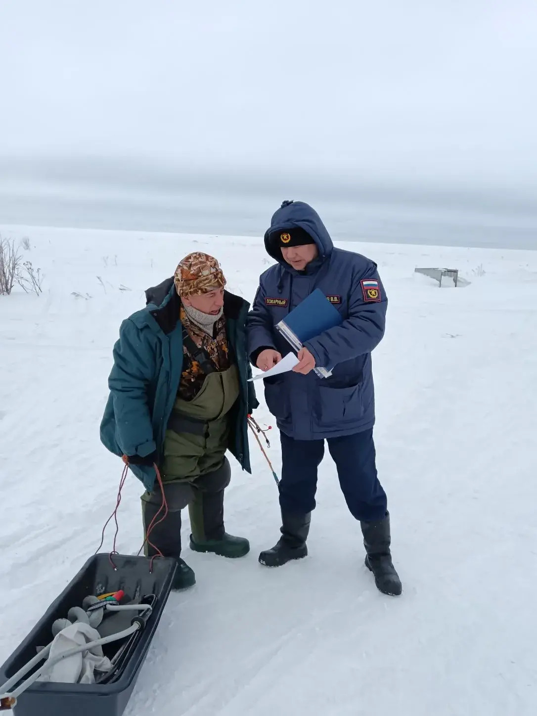В минувшие выходные работниками Александровск-Сахалинского и Новиковского пожарно-спасательных отрядов проведены беседы с рыбаками-любителями подлёдного лова, в ходе которых в очередной раз разъяснили правила безопасности, посоветовали рыбакам внимательно следить за погодой перед выходом на лед, воздерживаться от рыбалки при ухудшении условий.