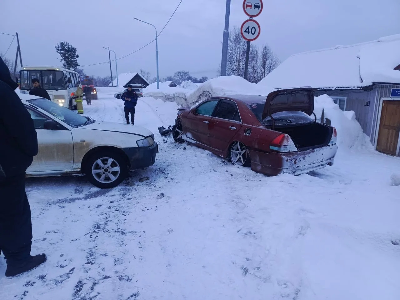 6 февраля в селе Воскресеновка Тымовского района произошло столкновение двух автомобилей Тойота Марк 2 и Ниссан.