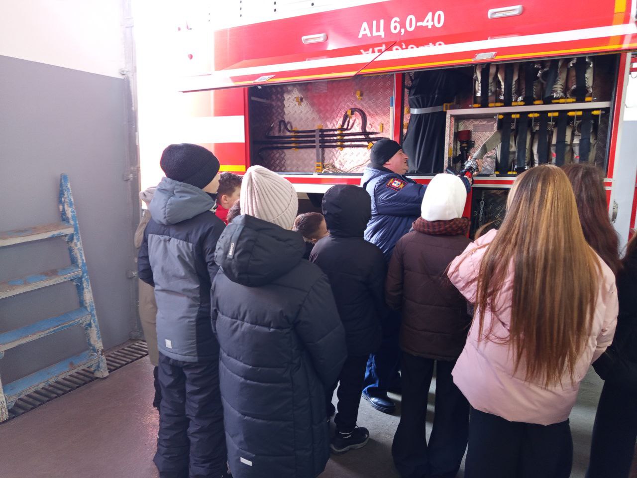 Огнеборцы провели ребят по пожарному депо, рассказали о службе и быте пожарных. Особый интерес у детворы вызвала выставка пожарно-спасательной техники и аварий-спасательного оборудования, развернутая специально для гостей.