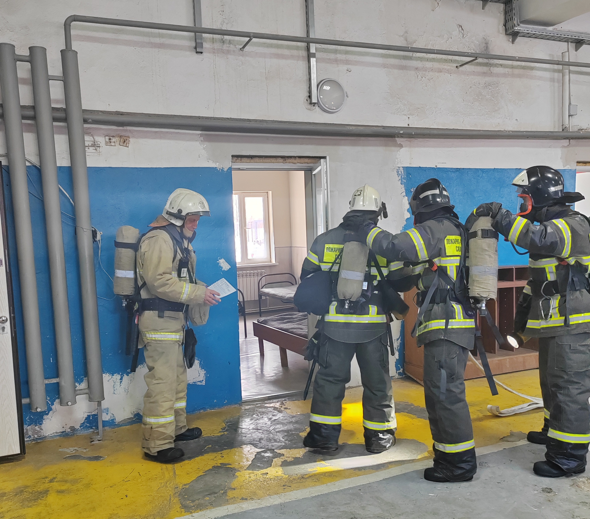 - обнаружение очага пожара в одном из помещений пожарной части, эвакуация личного состава, пожарной техники и оборудования, тушение условного пожара.