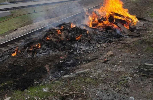 В этот же день сообщение о пожаре по адресу: г. Невельск, 10-й км автодороги Невельск — Холмск, поступило в диспетчерскую службу Невельского пожарно-спасательного отряда в 17:33. Через 13 минут пожарные прибыли на место происшествия. К этому времени на обочине железной дороги горел мусор на площади 100 кв. м.