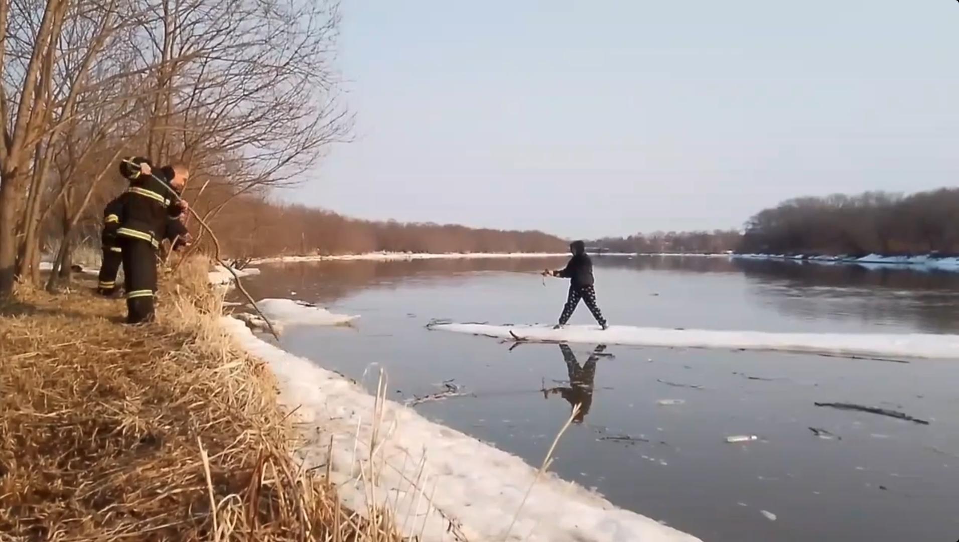 Работники пожарно-спасательной службы Анивского пожарно-спасательного отряда участвовали в спасении ребенка, оказавшегося на оторванной льдине