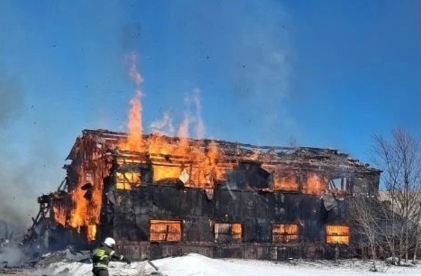 Сообщение о пожаре по адресу: г. Поронайск, ул. Хабаровская, 18, поступило в диспетчерскую службу Поронайского пожарно-спасательного отряда 14 апреля в 15:04. Через 5 минут пожарные прибыли на место происшествия. К этому времени на площади 1385 кв. м открытым пламенем горело неэксплуатируемое здание, пожар сопровождался сильным задымлением. Сильному распространению огня поспособствовало позднее сообщение о пожаре, угроза распространения пламени отсутствовала.