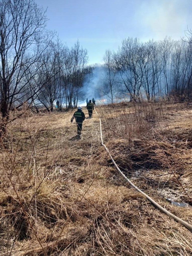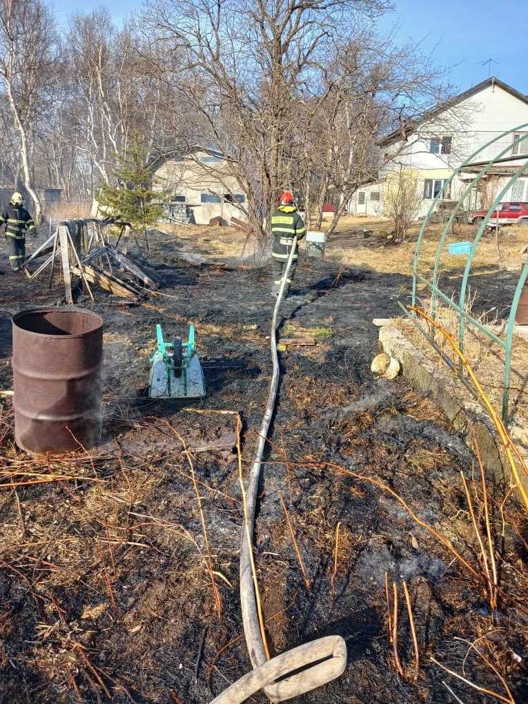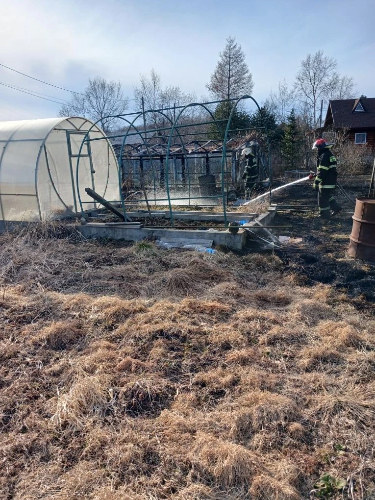 В 17:50 в диспетчерскую Анивского пожарно-спасательного отряда поступило сообщение о возгорании сухой травы в с. Рыбацкое, ул. Анивская. Пожарные прибыли на место в 17:53. К этому моменту горела сухая трава на территории частного домовладения. Была угроза возгорания теплицы.