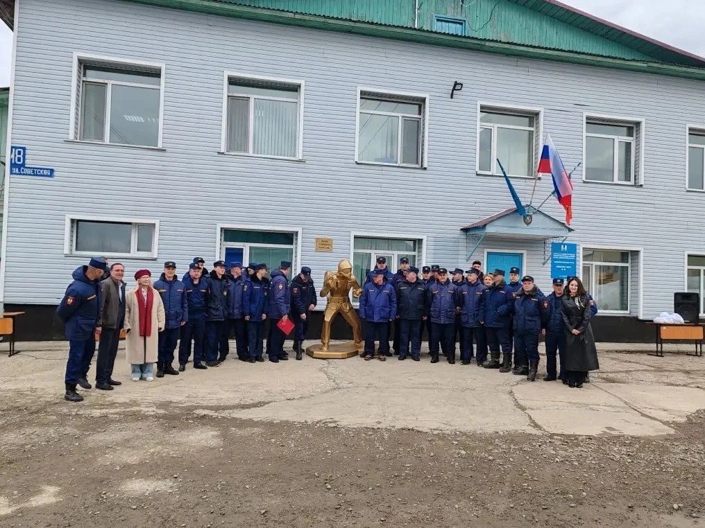 На территории Тымовского пожарно-спасательного отряда торжественно открыли скульптуру «Пожарный»