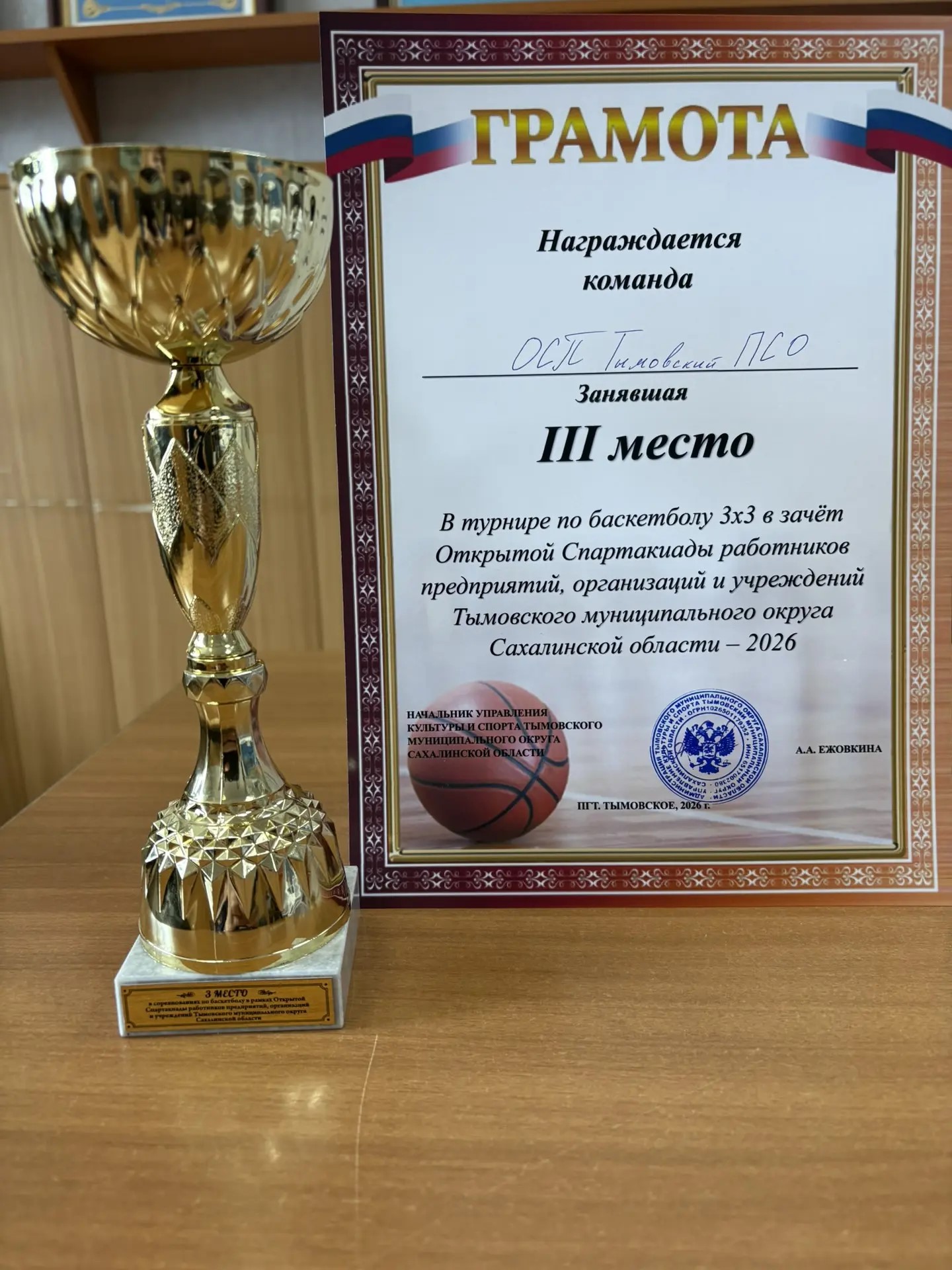 Команда огнеборцев заняла 3-е место, а лучшим игроком состязания по мнению судей стал Илья Голод — командир отделения пожарно-спасательной части № 51 пгт. Тымовское.